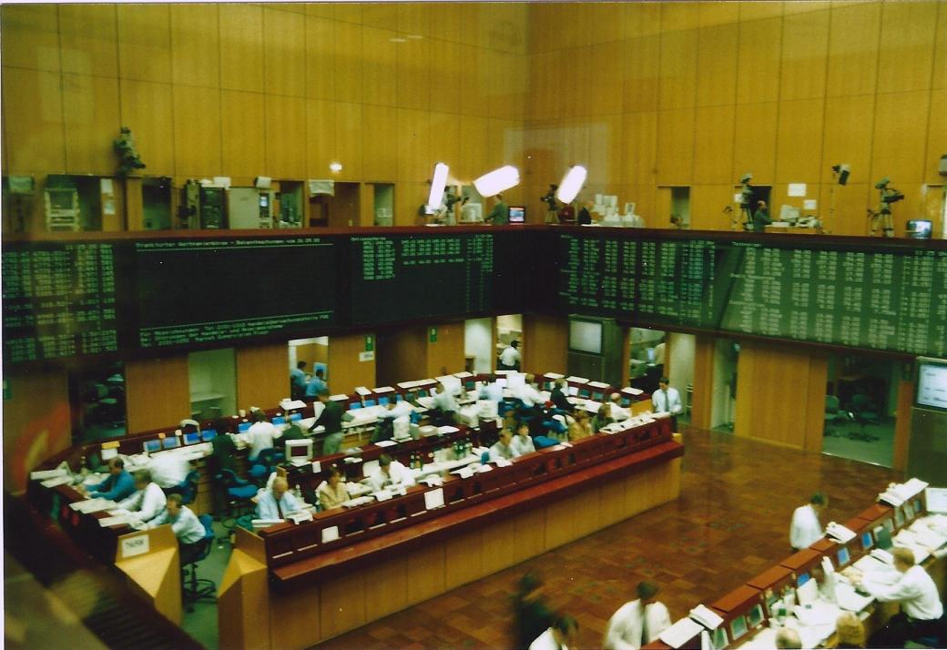 Da waren sie nun die heiligen Hallen der Börse. Nach einiger Zeit wurde die hochgesteckte Erwartung bei manchem sicherlich enttäuscht. Rein optisch betrachtet war hier nicht viel los! Keine hektisch herumlaufende, beidhändig telefonierende Makler. Keine wilden Handzeichen anderer Personen oder lautes Zurufen. Nun ja, ab und zu kam jemand aus den Seitentüren heraus, ging zielstrebig auf einen Monitor zu, tippte darauf herum und verschwand wieder dahin wo er herkam.